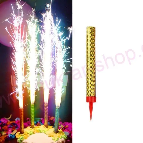 Fontánu stačí zapíchnout do dortu špičkou a horní okraj zapálit, poté vytvoří efekt zářících a chrlících jisker pro jedinečnou atmosféru.