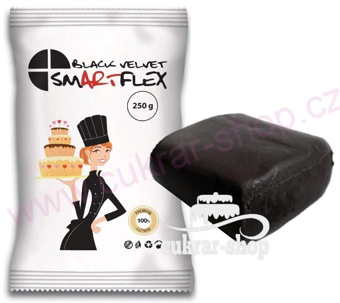 Černá, extra pružná hmota s vynikajícími vlastnostmi, vhodná zejména k potahování dortů a modelování figurek. Při modelaci i potahování je velmi pružná, nelepí se, rychle si drží tvar a "nesesedá" ani při tvorbě větších předmětů.