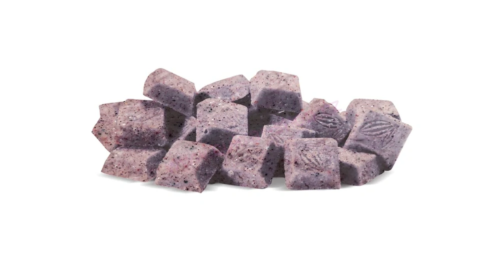 Delikátní bílá čokoláda s borůvkami. Díky použití dehydrovaného ovoce je dosaženo excelentní chuti, která v sobě nese kombinaci jemné bílé čokolády a borůvek.